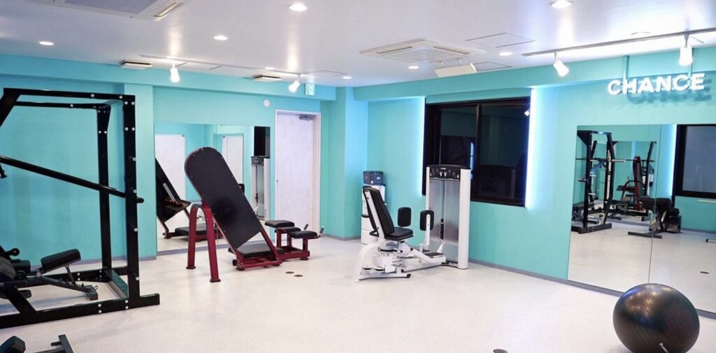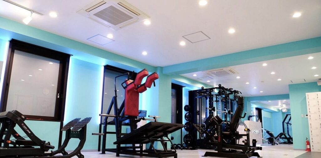 ポップな水色カラーの内装が一際目を惹く、オシャレなパーソナルジムです。各コンテストで優秀な成績を収める、一流プロトレーナーが在中〜皆様の理想の身体づくりをサポート。此方が都内2号店となります。